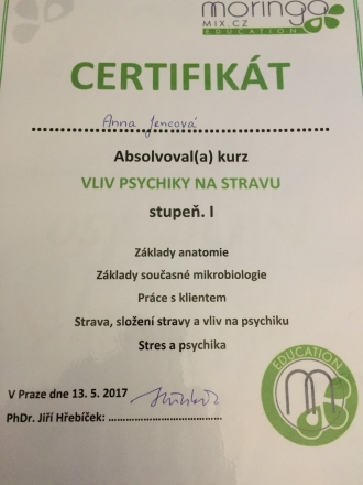 A protože není pouhý snílek, věnovala se ve volném čase studiu výživy a vzdělávání v gastronomii a baristice.